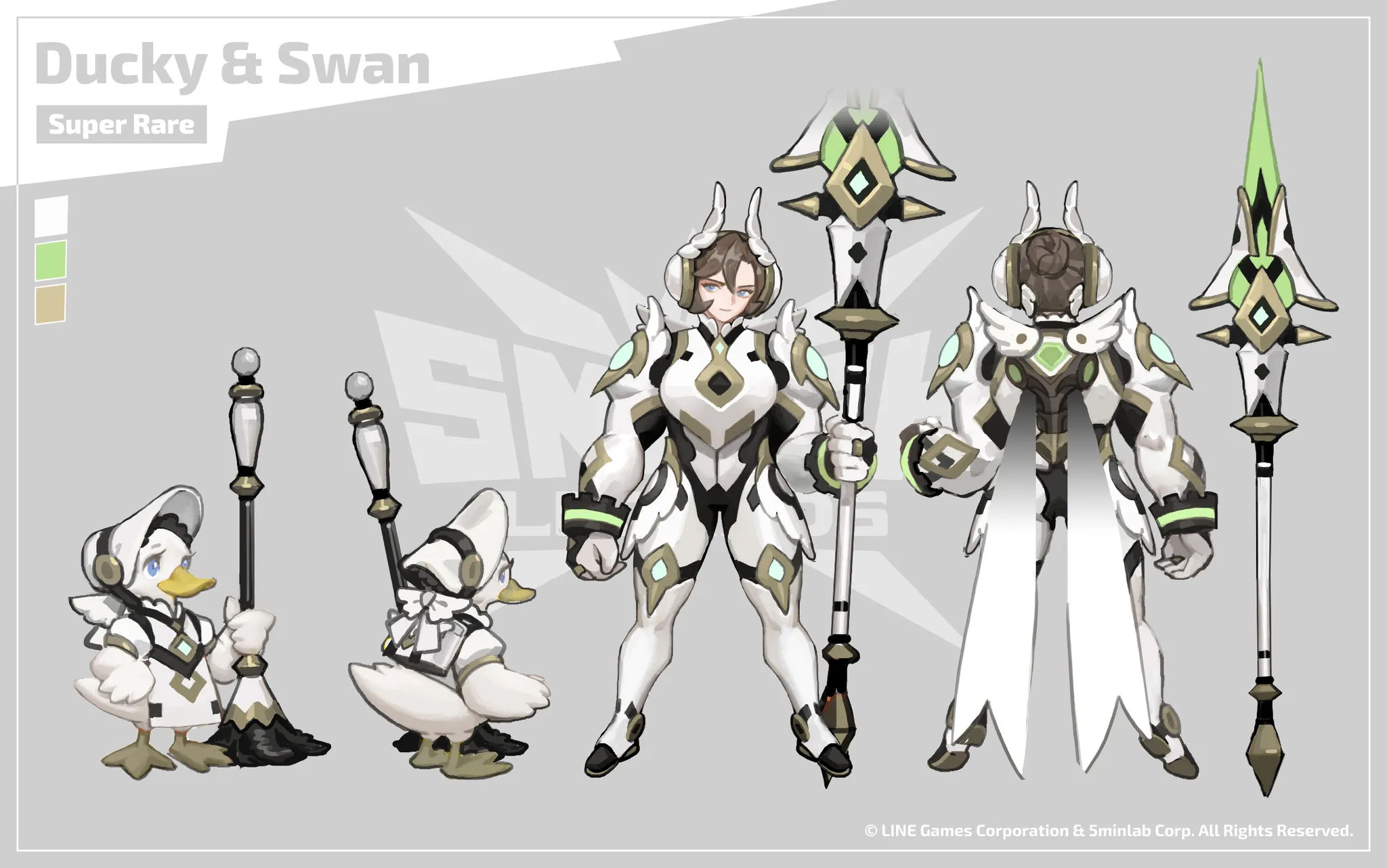 [스매시 레전드 개막!]을 기념하여 만들어진 특별한 복장. 라이브러리 월드의 모두가 주목하는 대회, 스매시 레전드. 선수들의 승리와 영광을 기원하며, 시놉 시티의 영웅, 스완이 승리의 수호자로서 모두에게 축복을 내린다.