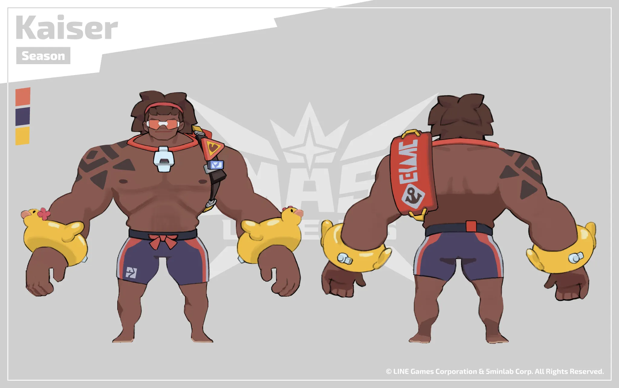 [떠나요 여름 휴가!]를 기념하여 만들어진 특별한 복장. 스매시 레전드에도 여름이 찾아왔다. 바쁘고 지치는 언제나의 일상에서 벗어나, 레전드들 역시 평소와 다른 모습으로 여름을 즐긴다. 카이저 역시 카이저 GYM의 업무를 잠시 중단하고, 바다의 구조자 라이프가드로 여름을 만끽한다.