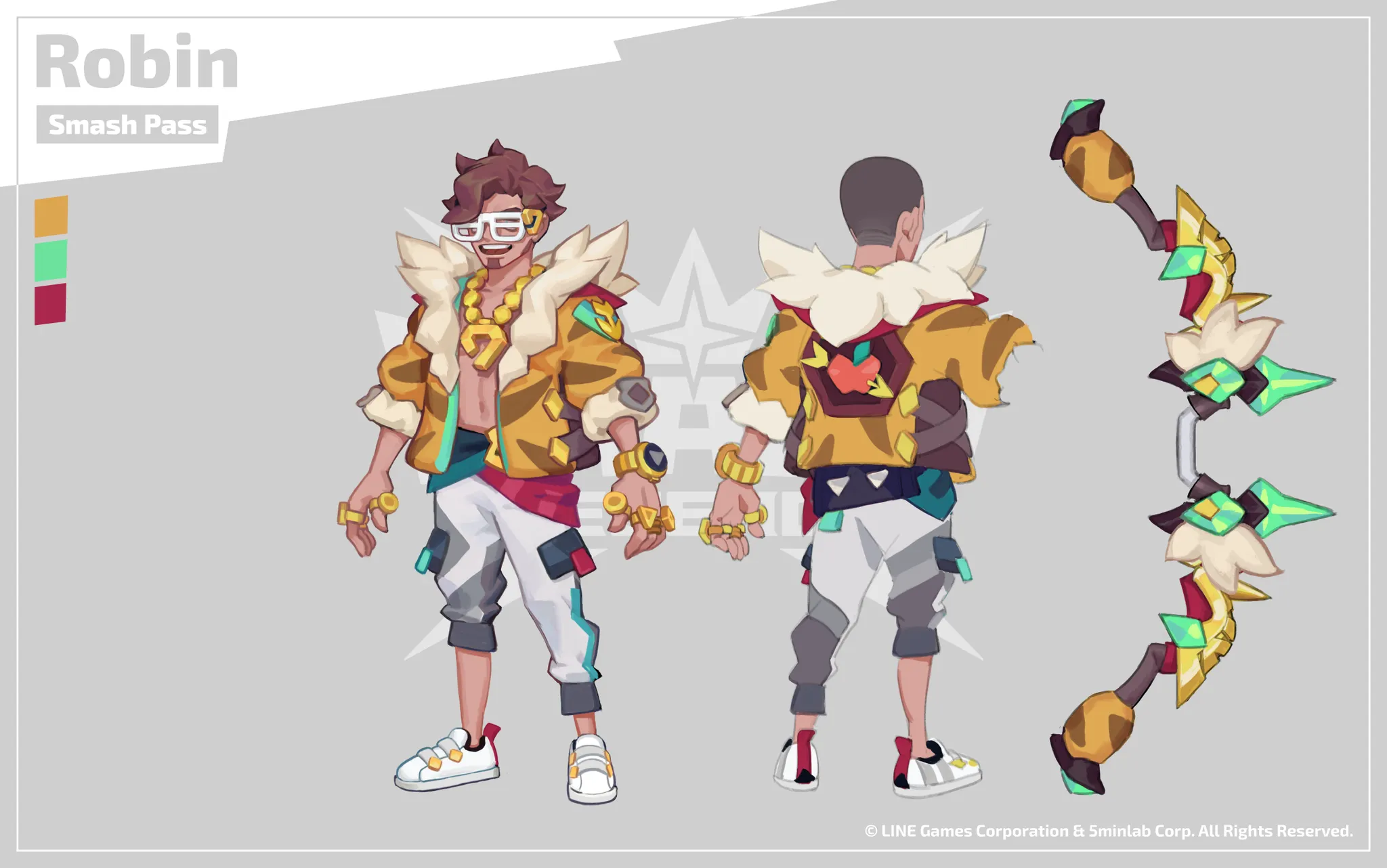 Rapidly shoots 3 arrows in a row, dealing 900 damage. Hold the button to charge Skill, and if charged for 0.3 s or more, he shoots 6 arrows that will pierce through the opponents and deal 1150 damage. Quickly jumps back a bit and shoots 3 arrows, dealing 800 damage when used as Aerial Skill.