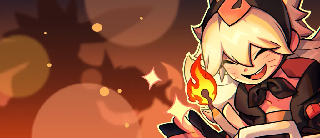 A special outfit made to celebrate [Troublemakers, Move Out!]. Excited to join the fun festival of SMASH LEGENDS, Flare was gifted this outfit by a kind wizard, so that she is able to play together with her scissor-wielding friend, and to never put a stop to her pleasant laughter with exploding flames.